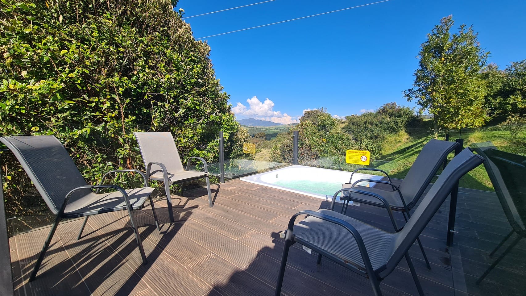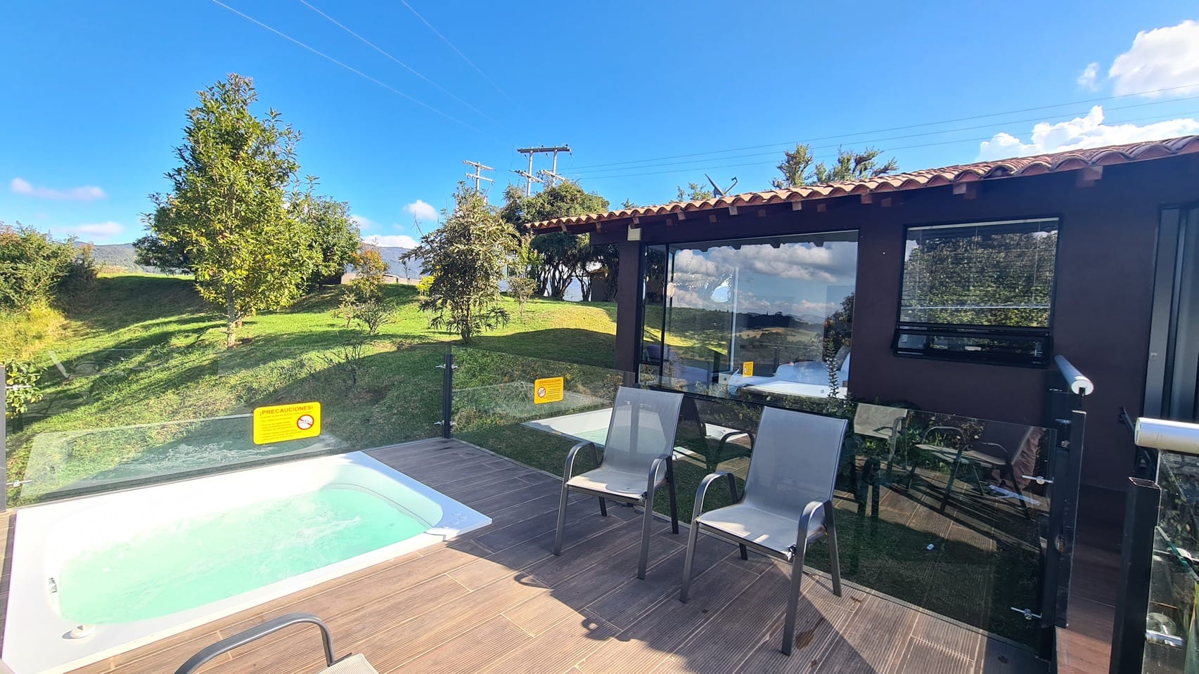 Casa Colina, caracterizada por sus ambientes minimalistas y una vista panorámica espectacular, ofrece una experiencia única desde sus tres habitaciones. La primera habitación tiene una cama doble, la segunda y tercera habitacion cuentan con una cama doble y una sencilla. La amplia terraza y el jacuzzi exterior, integrado con el paisaje, proyectan amplitud y hacen que la casa se mezcle con la belleza natural que la rodea.